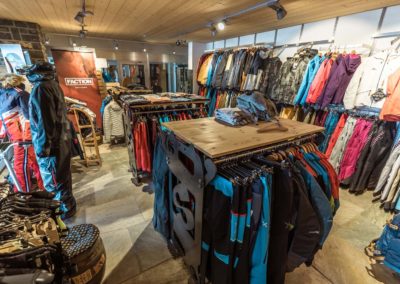 Vous trouverez en boutique une sélection de marques premium pour équiper vos skis, snowboards et votre tenue de glisse.