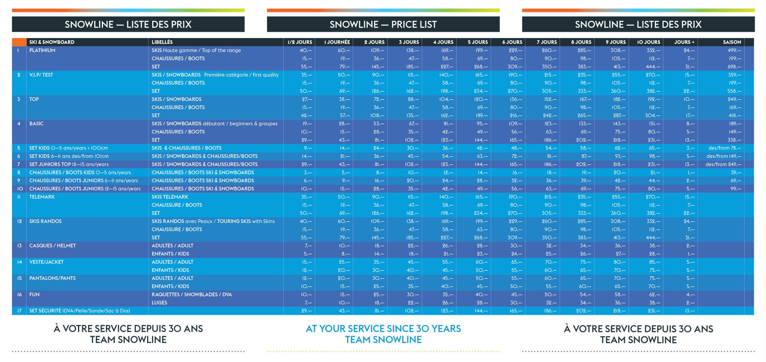 - Skis & snowboards haut de gamme (PLATINIUM, VIP, TOP)